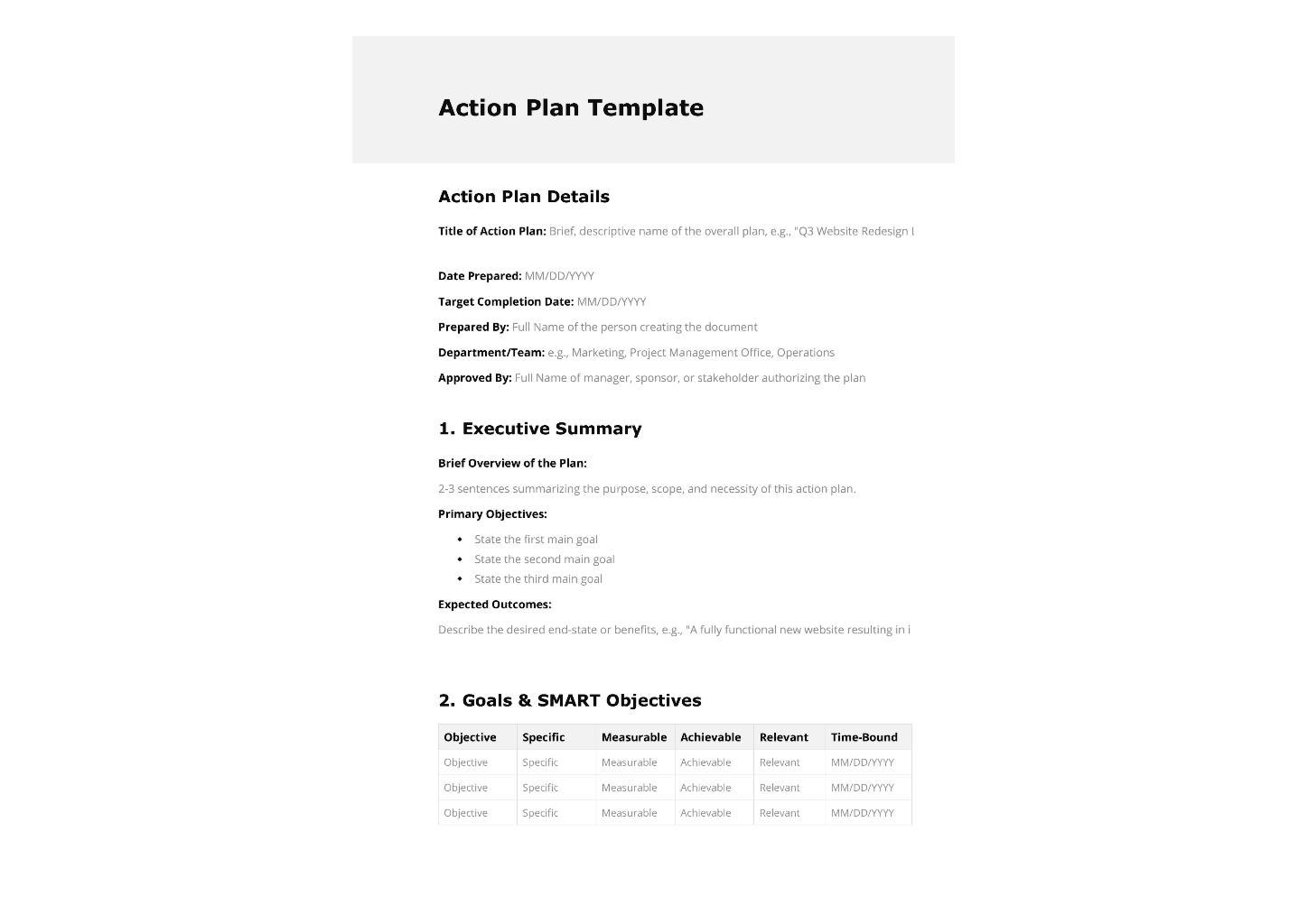 Get a ready-made Action Plan template online or just download it in PDF.