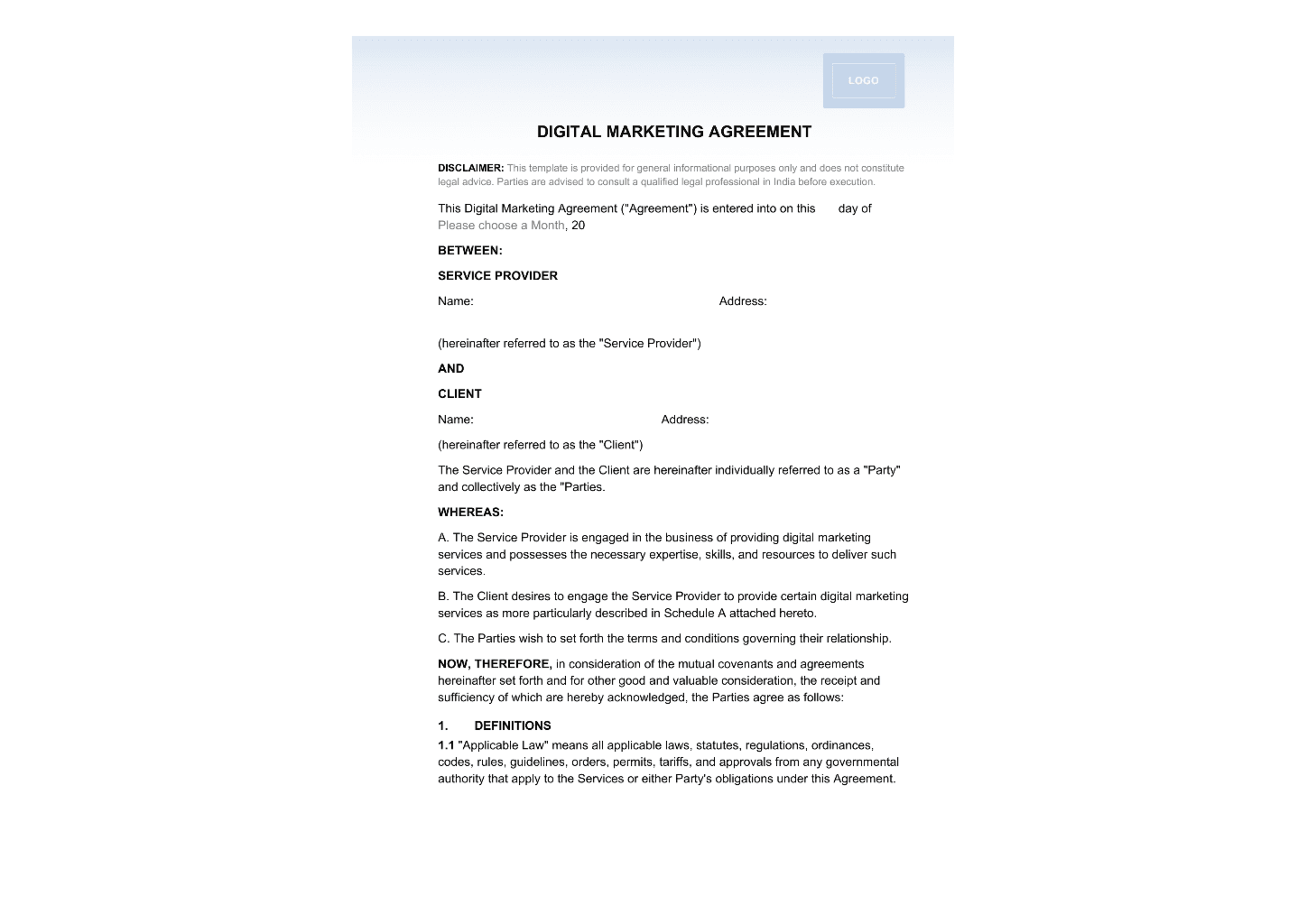 Get a ready-made Digital Marketing Agreement template online or just download it in PDF.