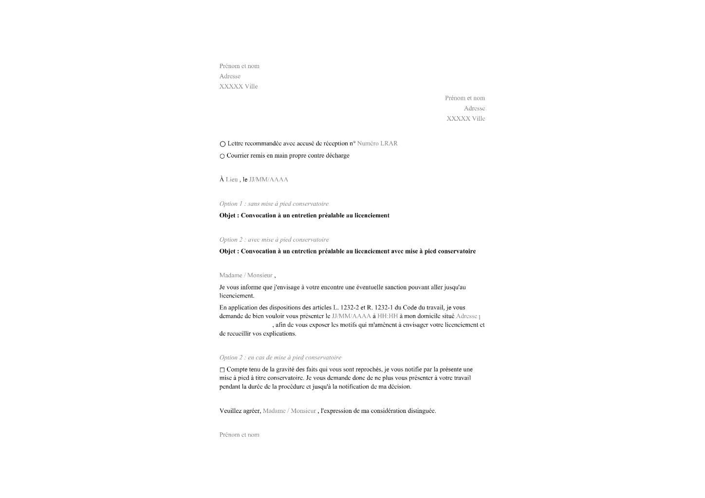 Convocation à un entretien préalable au licenciement