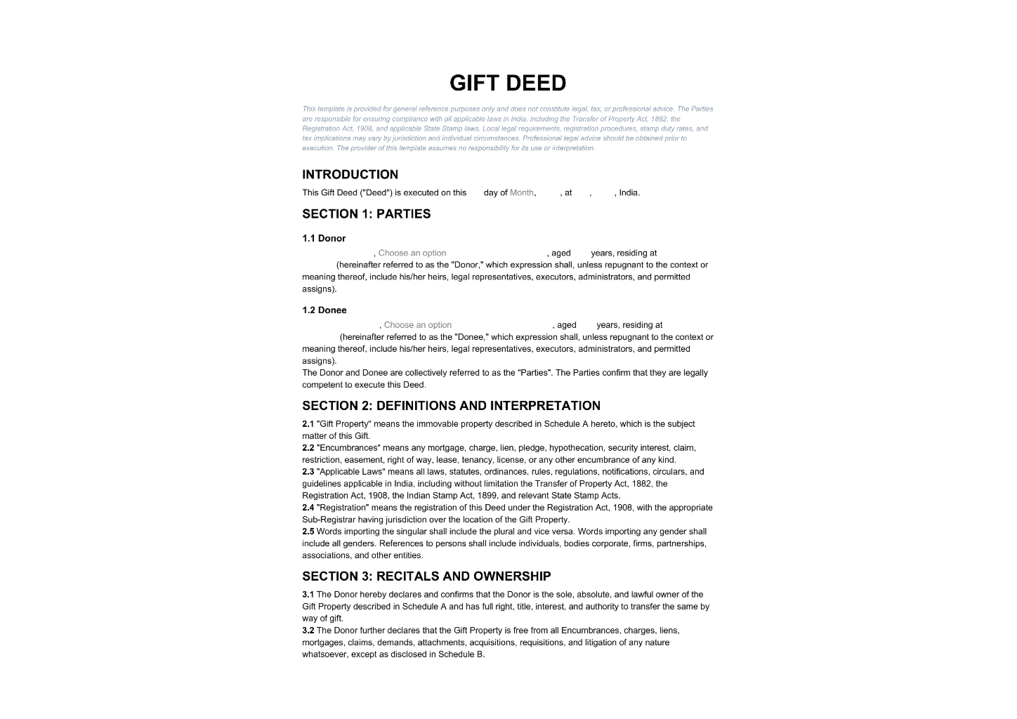 Get a ready-made Gift Deed template online or just download it in PDF.
