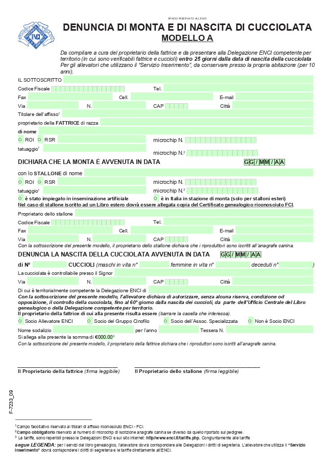Modello di Denuncia di monta e di nascita di cucciolata, modello A – ENCICompila il modulo online, ottieni un modello compilabile di Denuncia di monta e nascita cucciolata o scarica fac simile