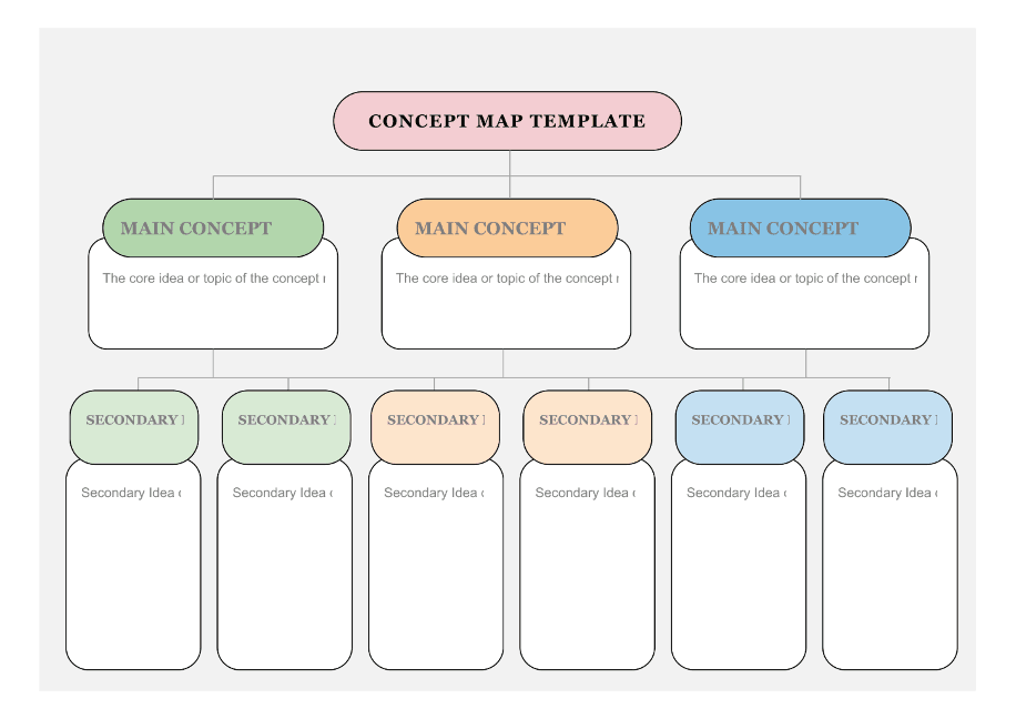 Concept map templateGet a ready-made Concept Map template online or just download it in PDF.