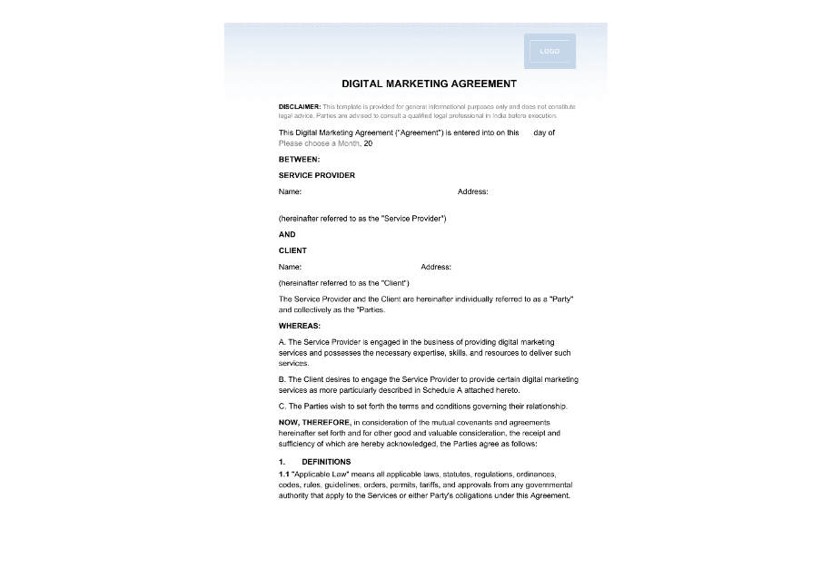 Digital marketing agreementGet a ready-made Digital Marketing Agreement template online or just download it in PDF.
